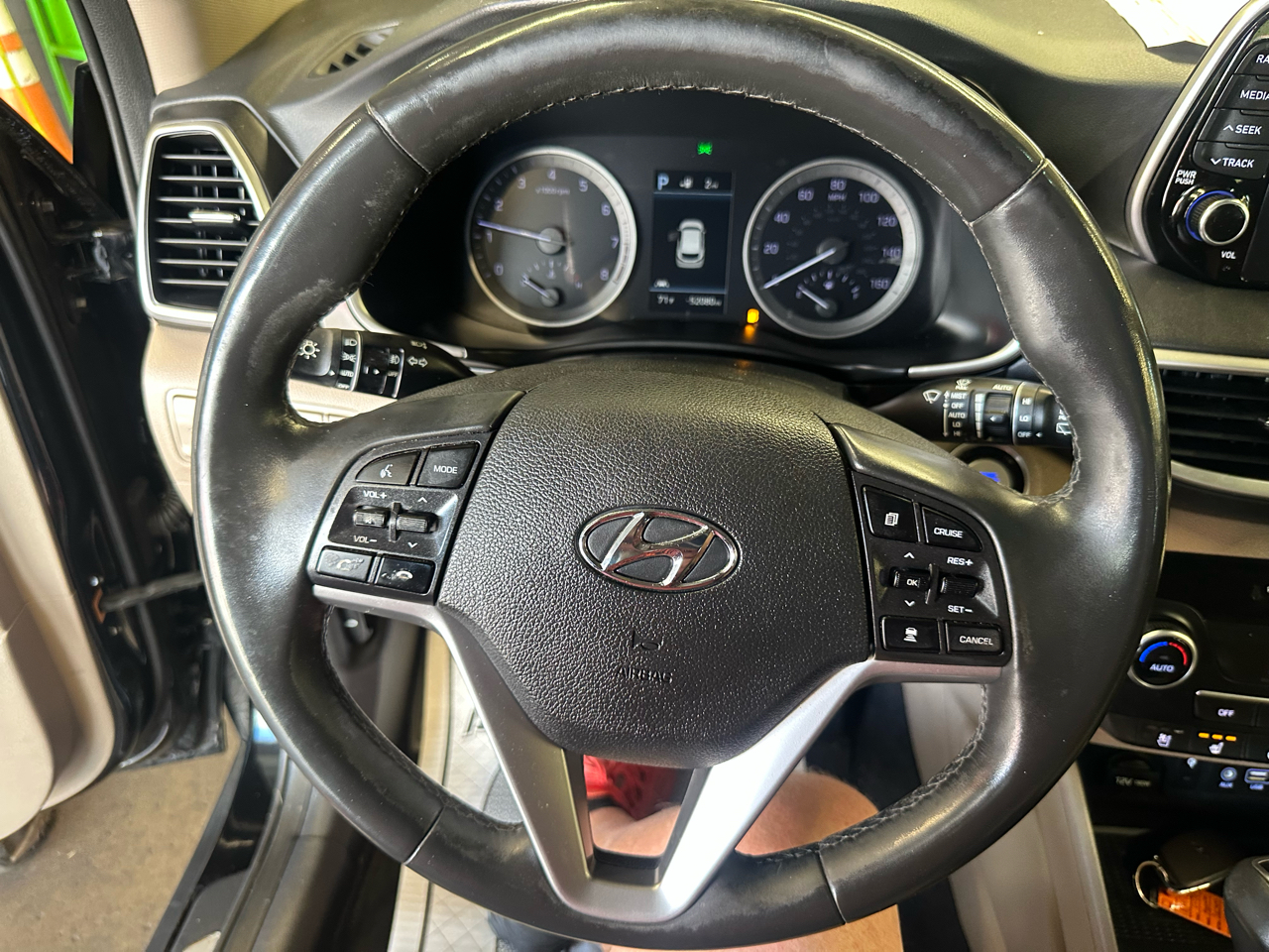 Safety is a top priority in this Hyundai Tucson, featuring Blind Spot Collision Warning, Collision Mitigation-Front, and Forward Collision-Avoidance Assist with Pedestrian Detection. The Aerial View Camera System and side cameras provide additional peace of mind when navigating tight spots or backing up.