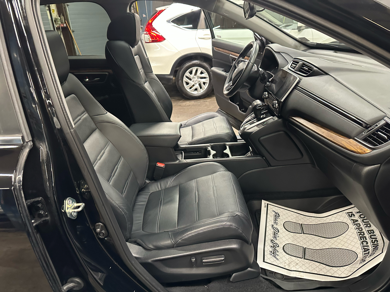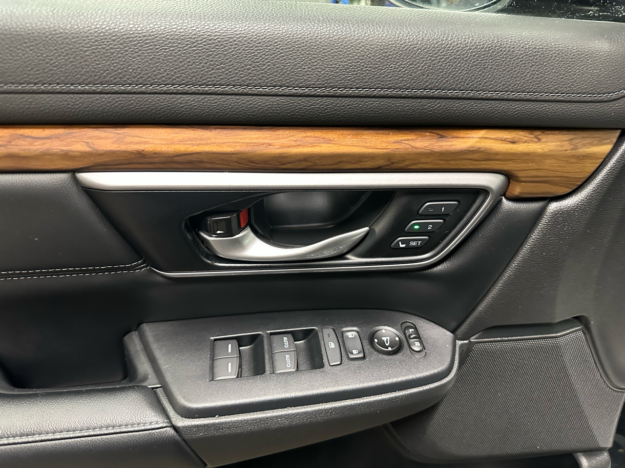 Step inside this CR-V and you'll find yourself surrounded by comfort and convenience. The spacious interior features plush seating for five, with a 60/40 split-bench rear seat that easily folds down for extra cargo space. The driver's seat is power-adjustable for customized comfort, while dual-zone automatic air conditioning keeps everyone feeling just right.